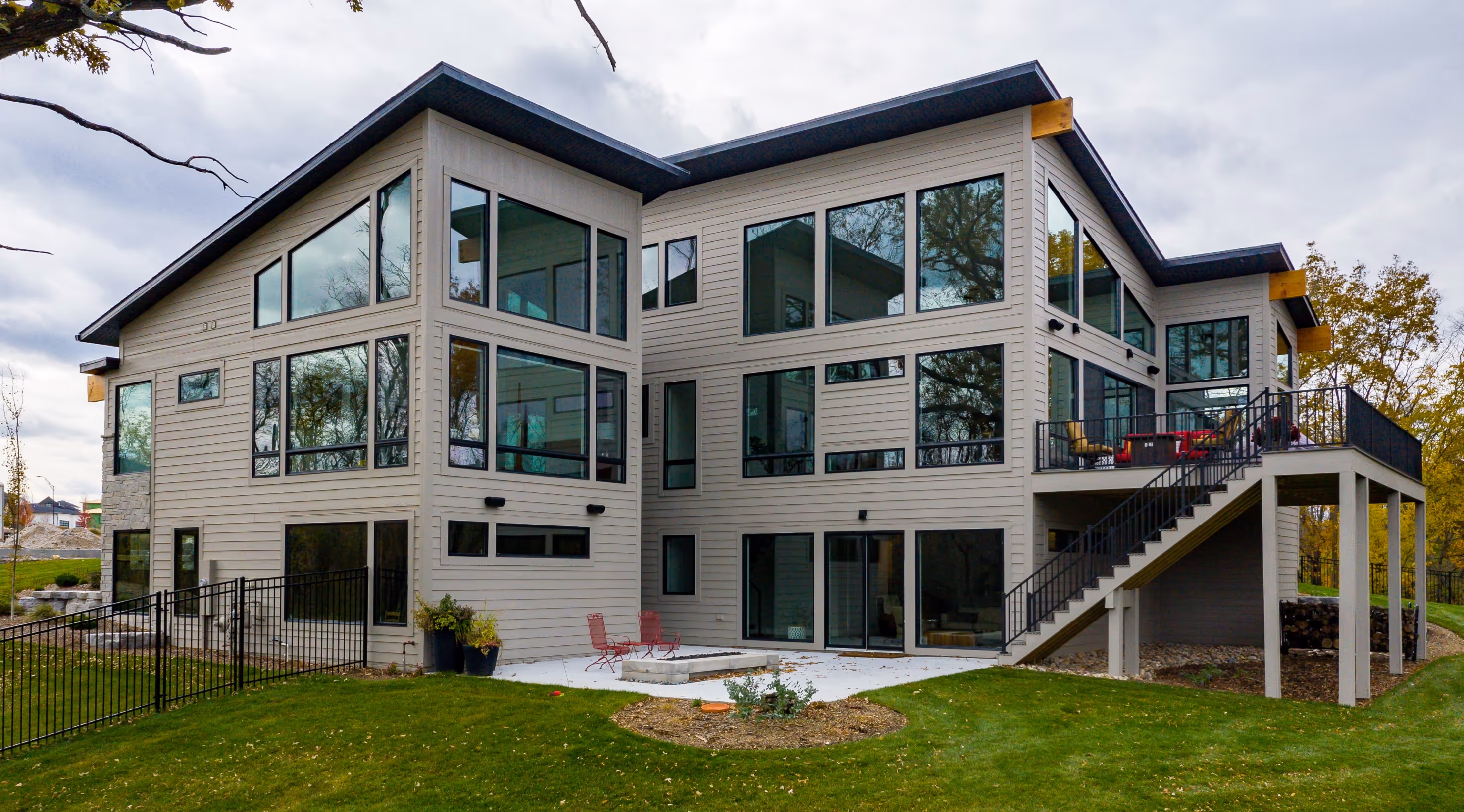 This stunning modern home blends architectural elegance with natural serenity, nestled among mature trees and rolling hills. Its sleek lines and expansive windows flood the interior with light while connecting the indoors to the peaceful, wooded surroundings. Thoughtfully designed with premium finishes, a spacious open floor plan, and a warm exterior palette of stone, wood, and glass, this home offers both sophistication and comfort. The inviting covered porch and private backyard make it perfect for entertaining or unwinding in nature—all just minutes from town yet worlds away in feel.